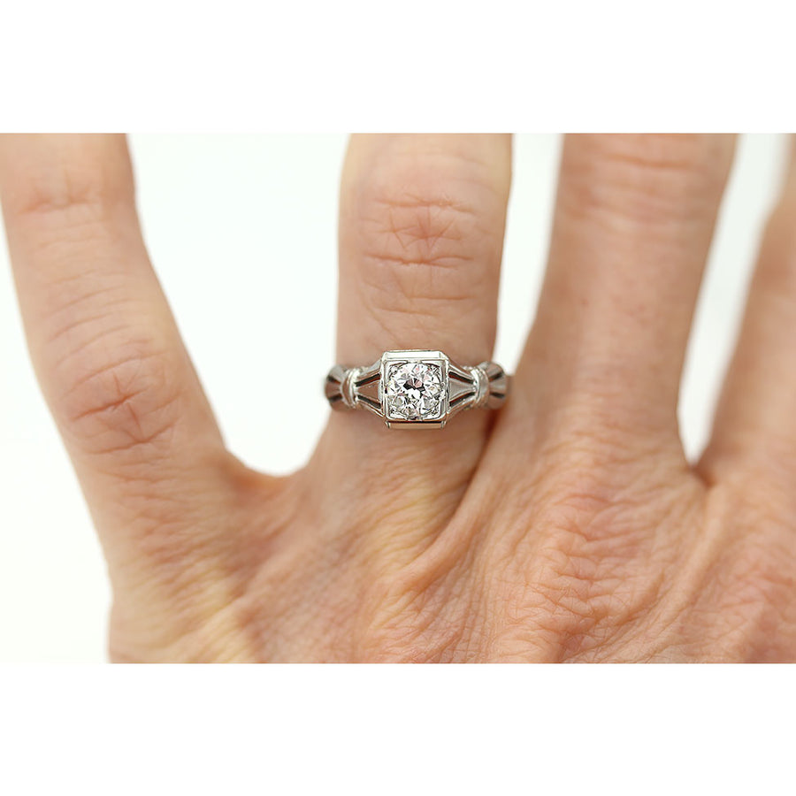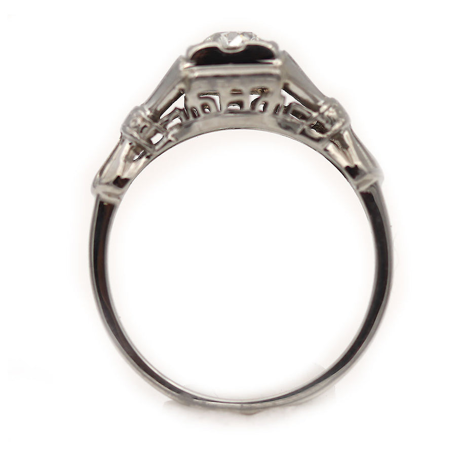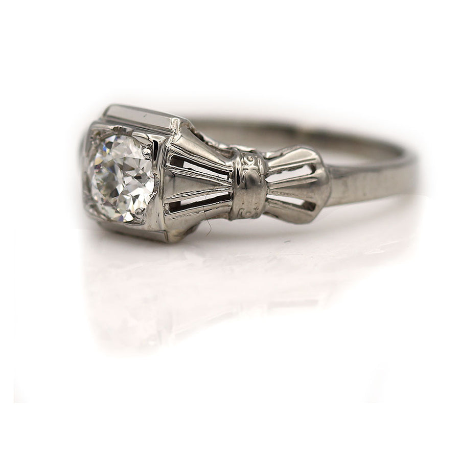 Antique .43ct GIA Old European Cut Diamond - 18k White Gold Art Deco Ring
