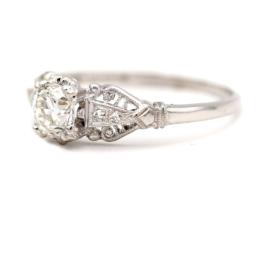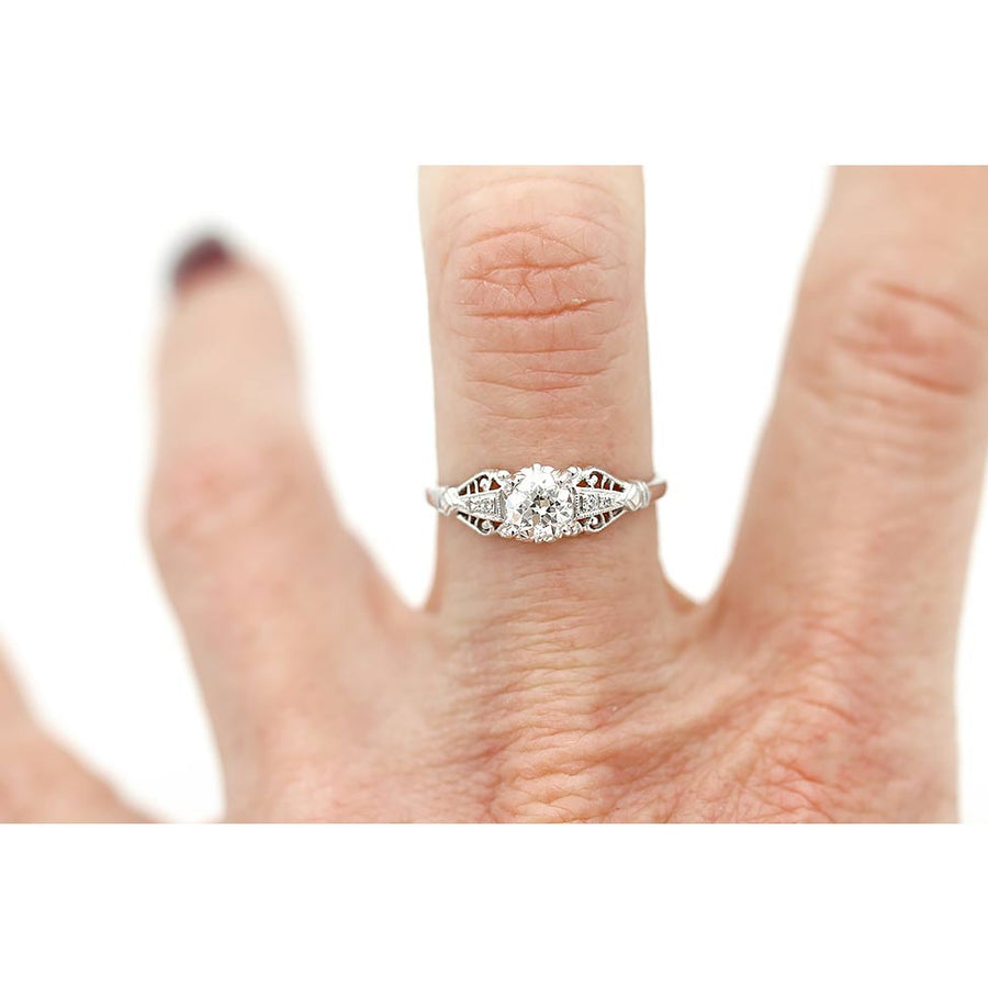 Art Deco .55 CTW Old European Cut Diamond Platinum Engagement Ring – GIA F/VS1