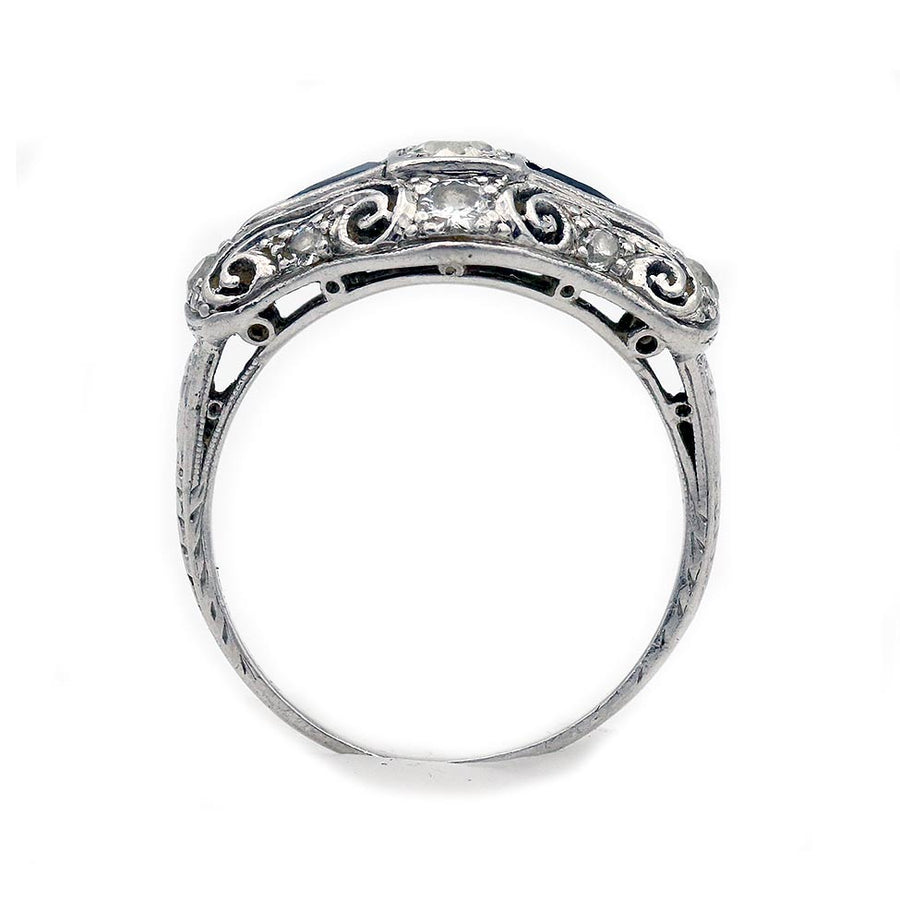 Art Deco .20 CT Old Mine Cut Diamond & Sapphire Ring | 1930s