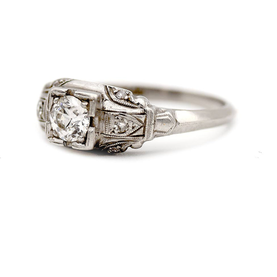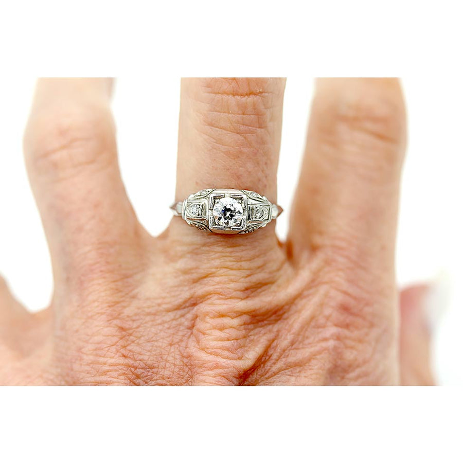 Art Deco .57 CTW Old European Cut Diamond Platinum Vintage Engagement Ring