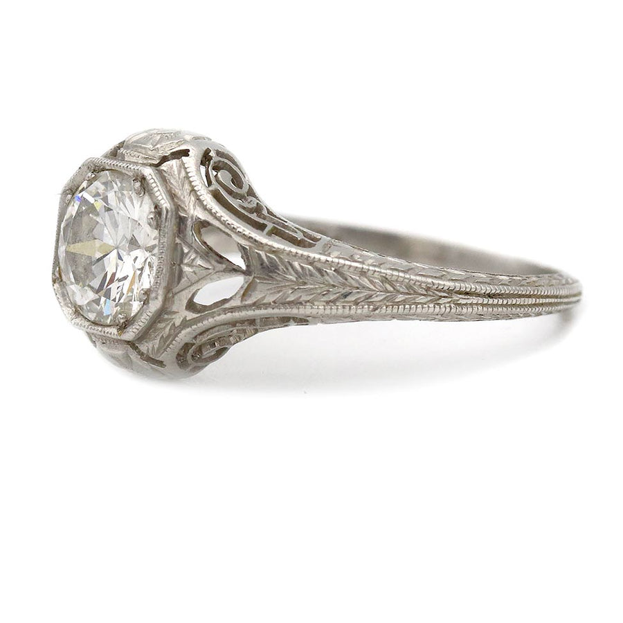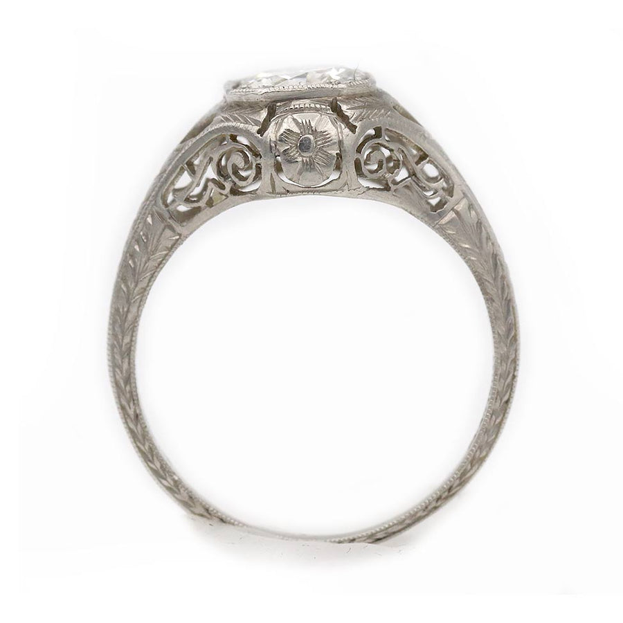 Art Deco .68 CTW Old European Cut Diamond Low Profile Platinum Engagement Ring — GIA H/VS2