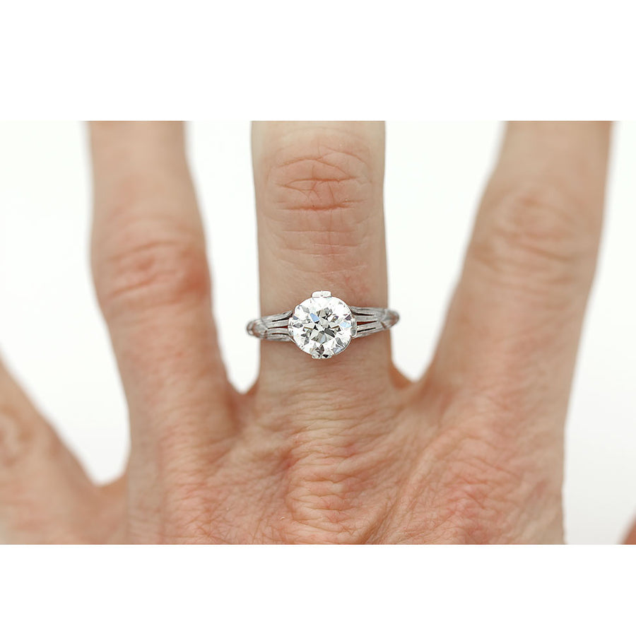 Art Deco 1.63 Ct Old European Cut Diamond Solitaire Engagement Ring in Platinum | GIA J/VS2