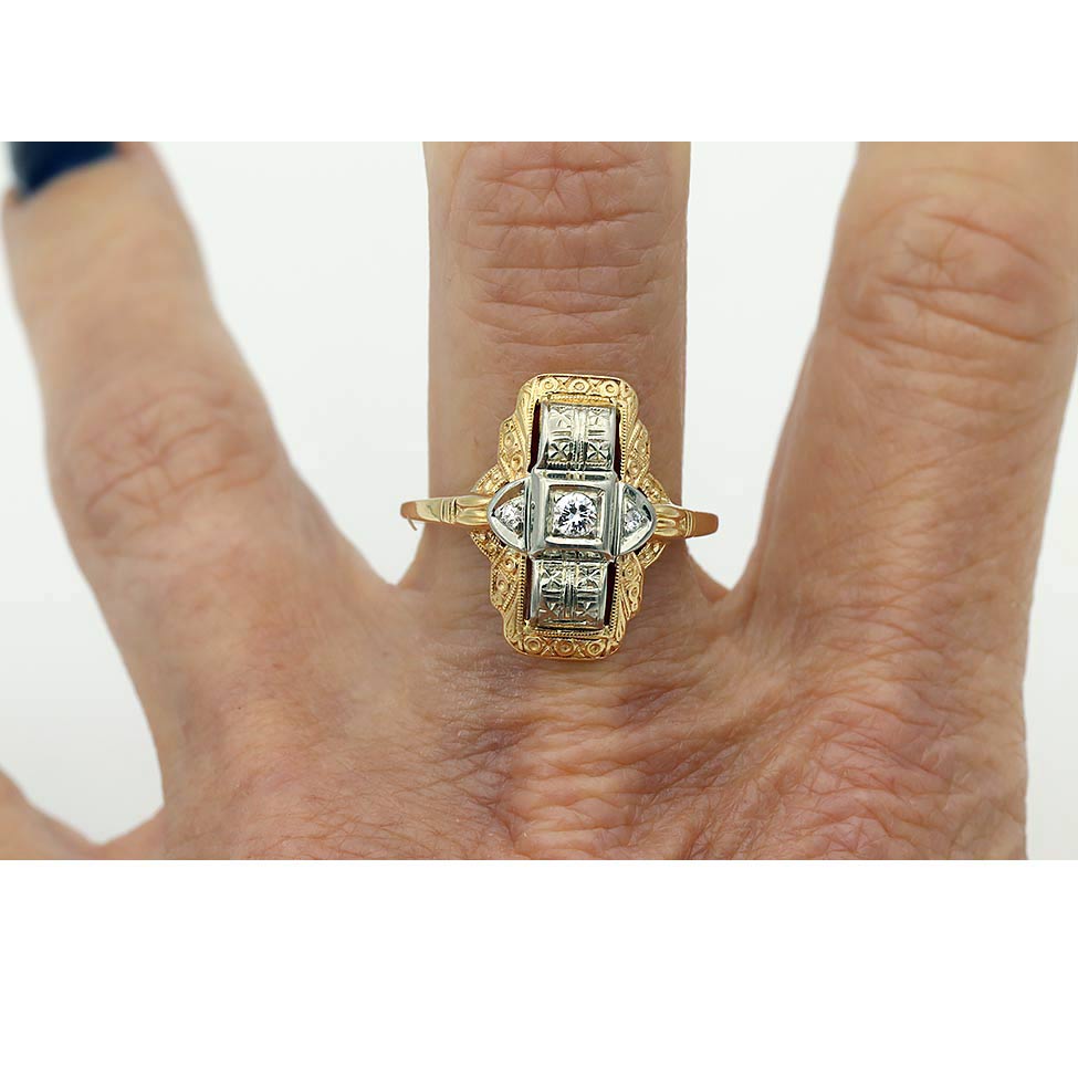 Vintage Jabel Diamond Cocktail Ring in Two-Tone Gold | 1940s