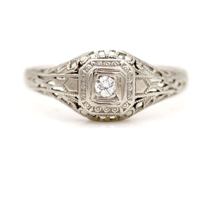 Antique 18 Karat White Gold Filigree .20 CTW Diamond Solitaire Engagement Ring