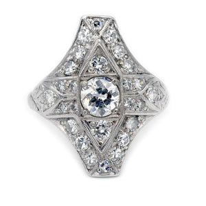 Art Deco North–South Old European Cut Diamond Platinum Cocktail Ring | Circa 1930s