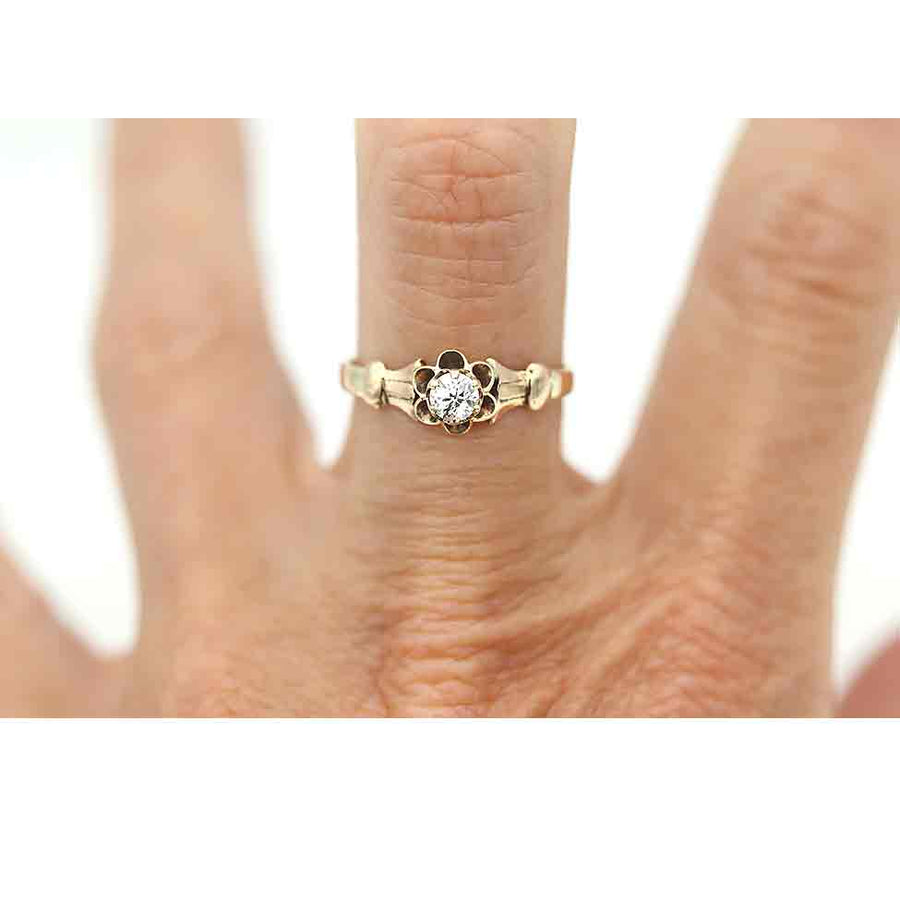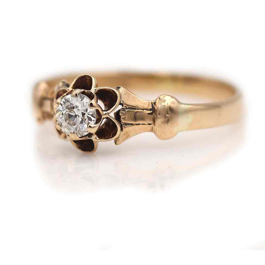 Victorian .25 Ct Old Mine Cut Diamond Solitaire Engagement Ring in Rose Gold | Circa 1900s