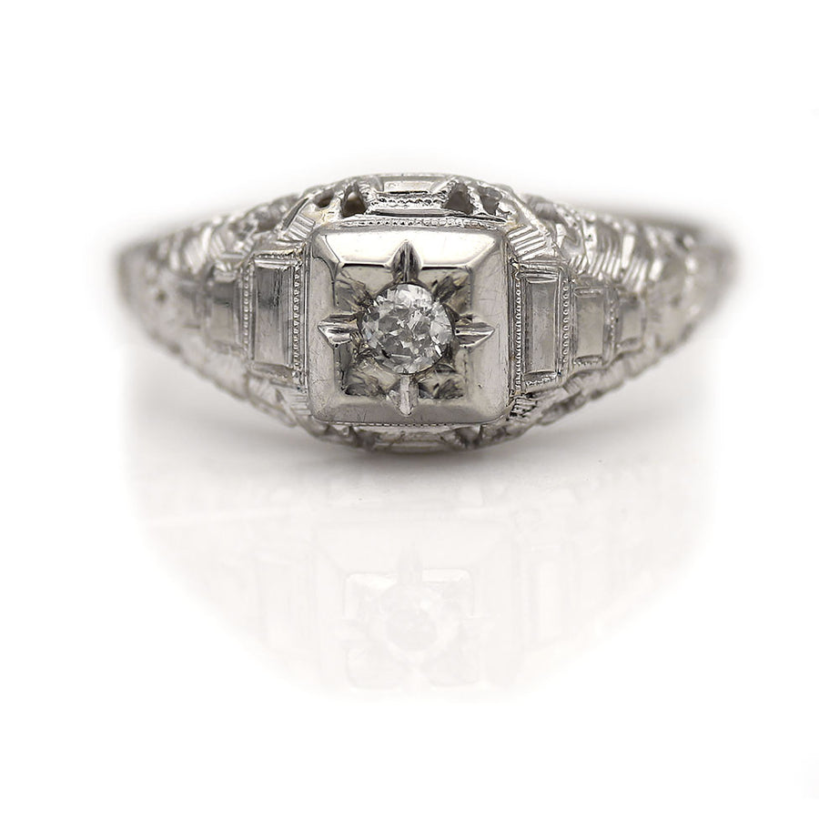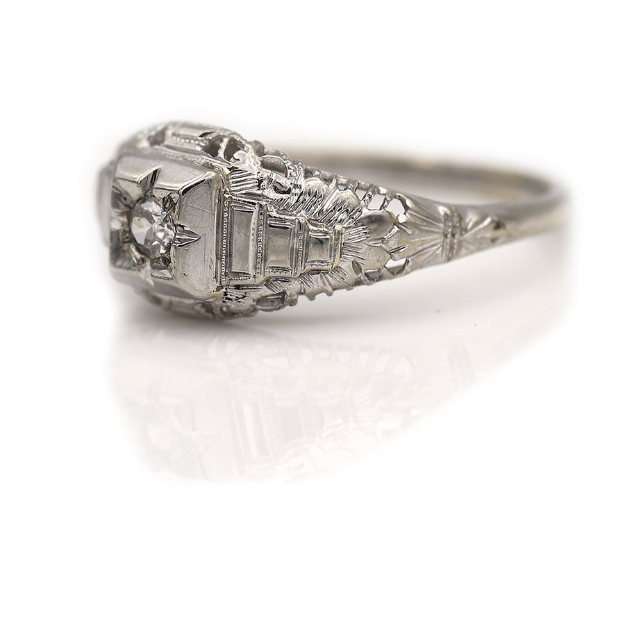 Antique .07 CTW Filigree Old Mine Cut Diamond Art Deco Engagement Ring
