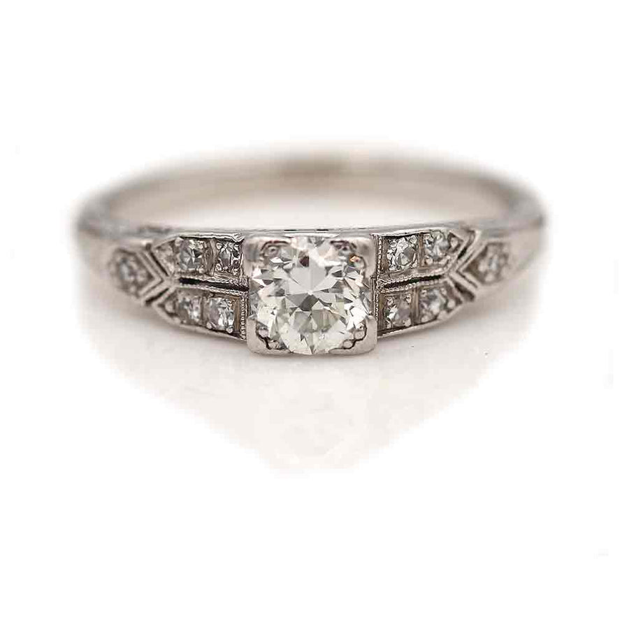 Antique .65 CTW Old European Cut Diamond Solitaire Art Deco Engagement Ring