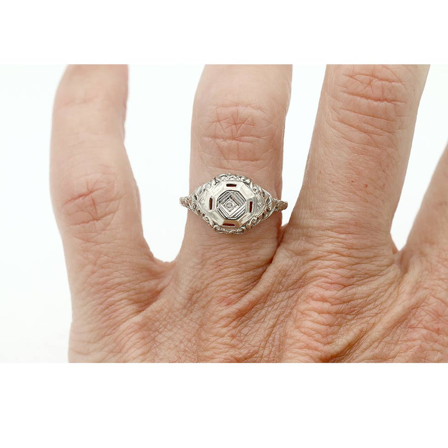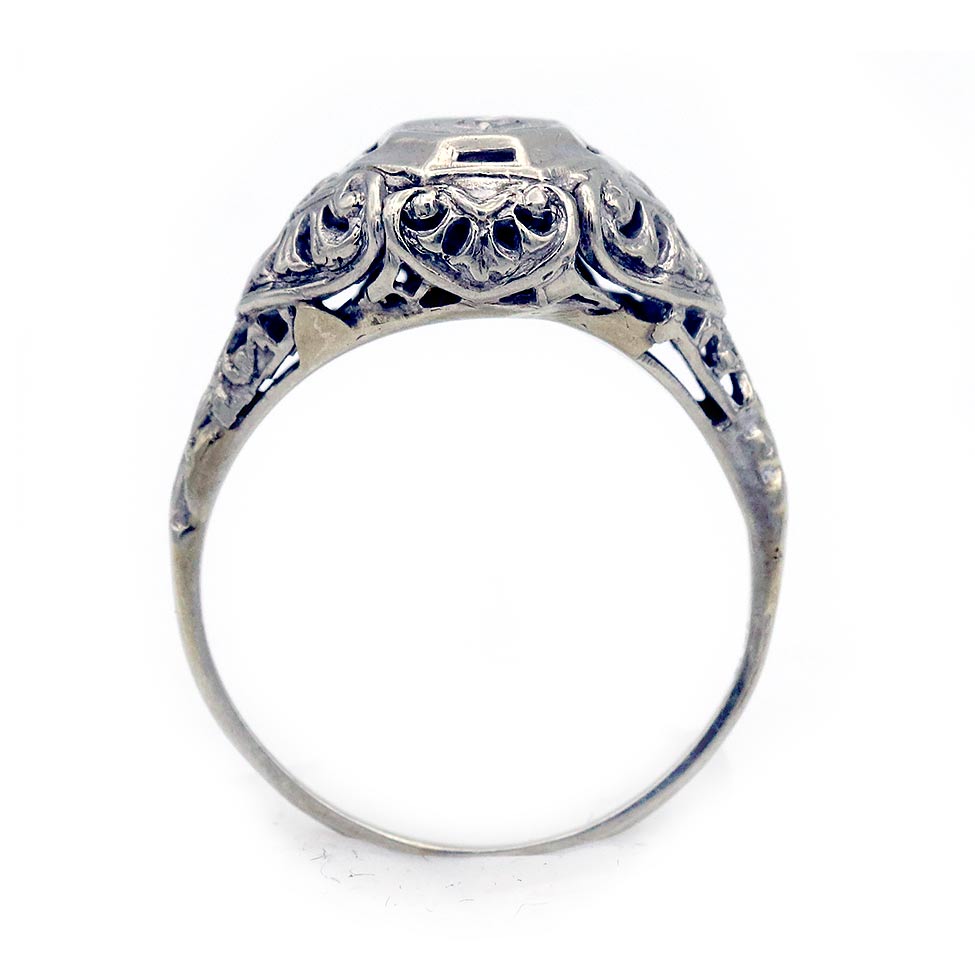 Art Deco .03 CTW 14 Karat White Gold Diamond Filigree Vintage Engagement Ring
