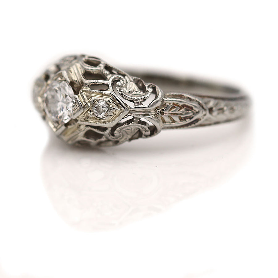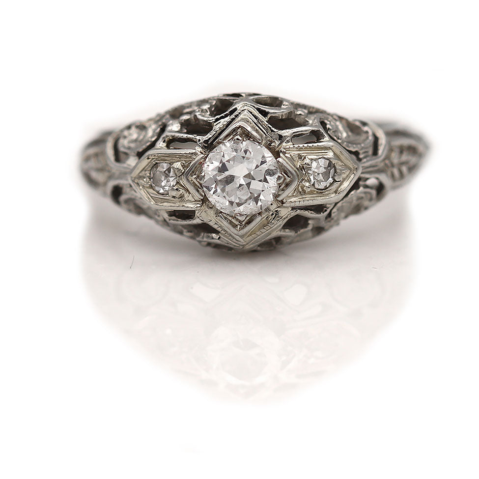 Art Deco .36 CTW Vintage Old European Cut Diamond Vintage Engagement Ring