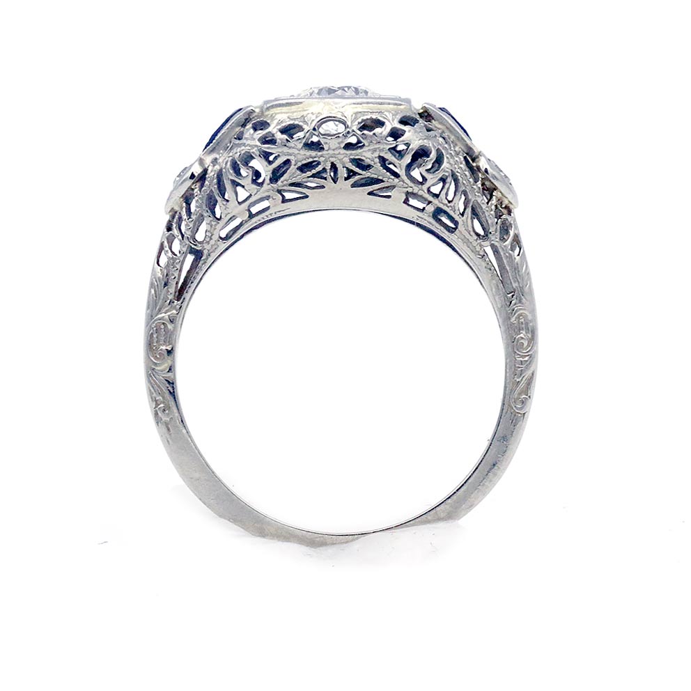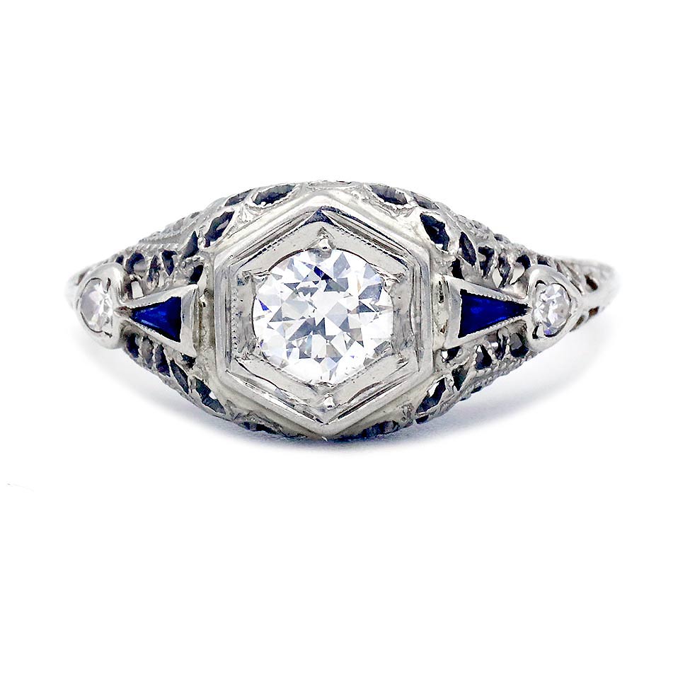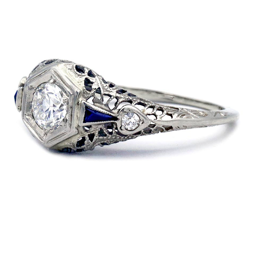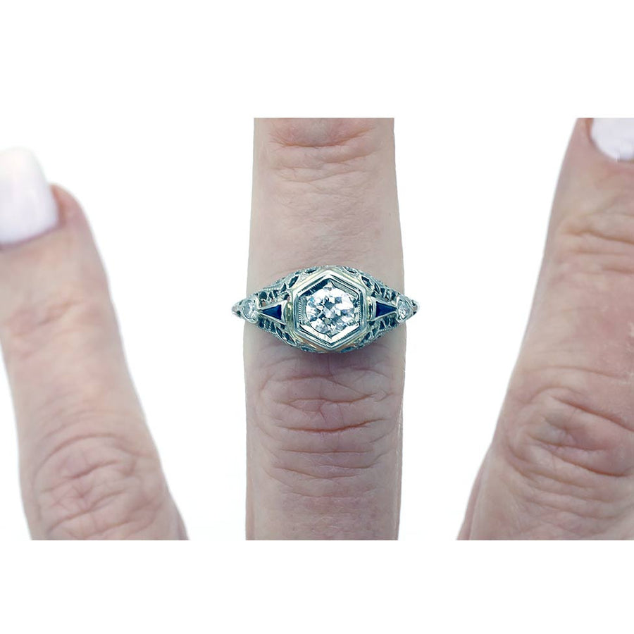 Art Deco .55 CTW Old European Cut Diamond Sapphire Engagement Ring