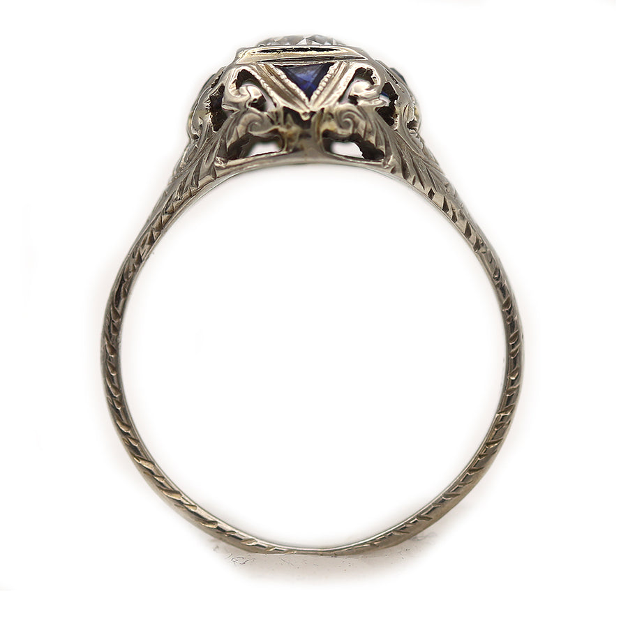 Art Deco .90 CTW Four Point Star Old European Cut Diamond Sapphire Engagement Ring