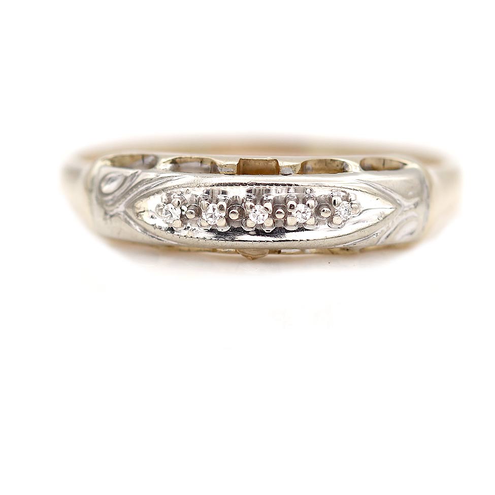 Dainty Mid Century Vintage 5 Stone Two Tone Round Diamond Stacking Band