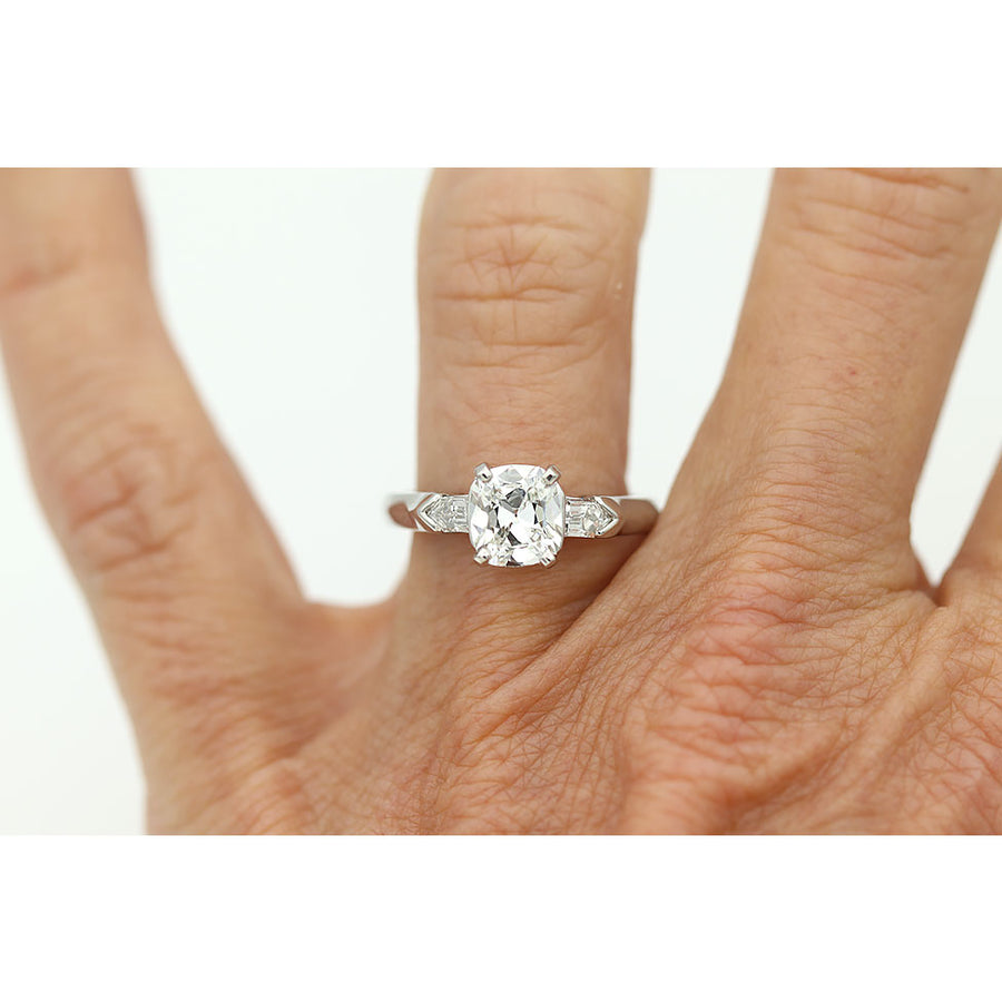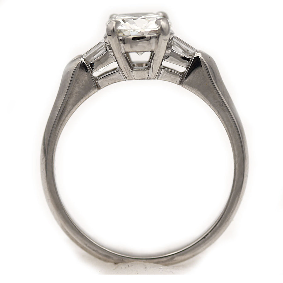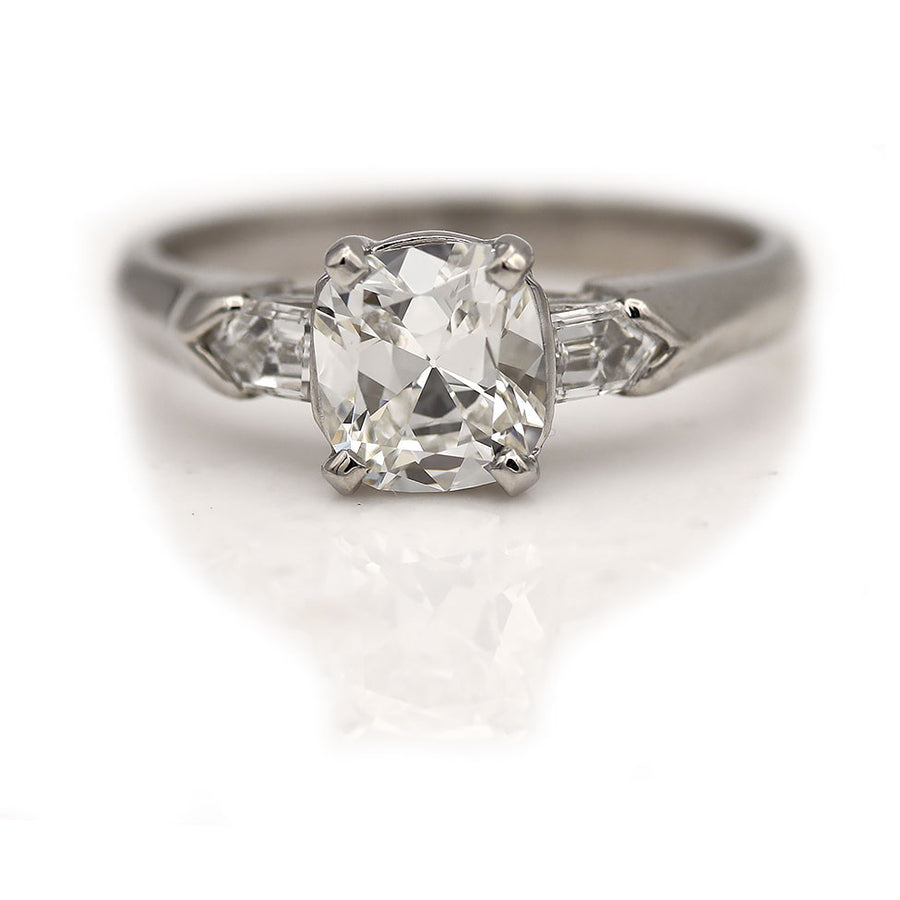Mid-Century 1.33 CTW Cushion Cut Diamond Vintage Engagement Ring Bullet Diamonds GIA H/VS1