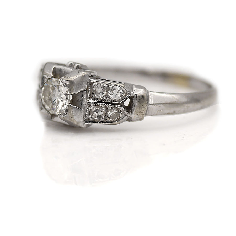 Vintage .41 CTW Old European Cut Diamond Split Shank Art Deco Engagement Ring