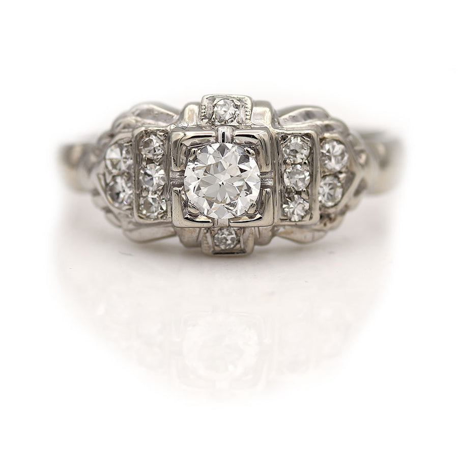Vintage .58 CTW Old European Cut Diamond Art Deco Engagement Ring