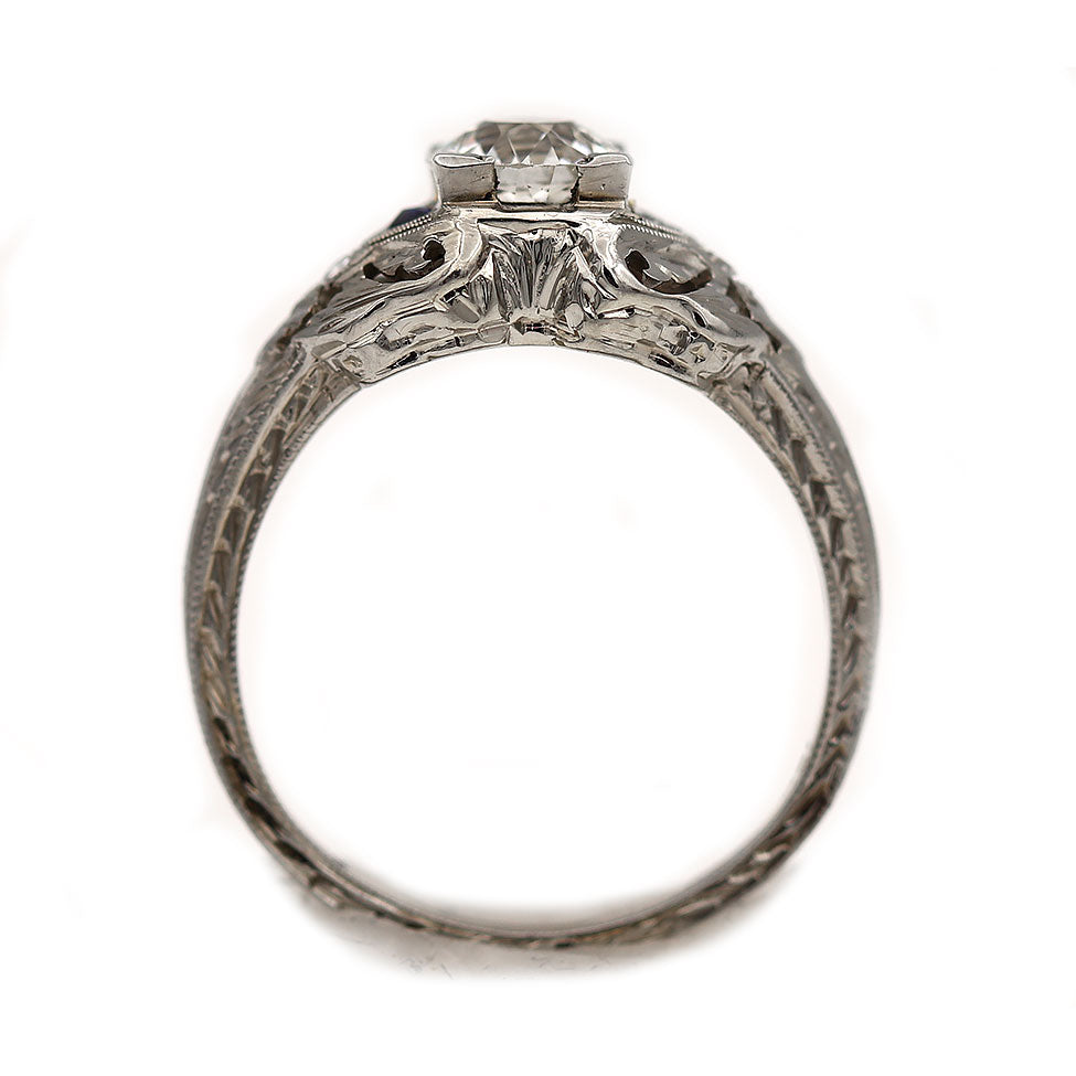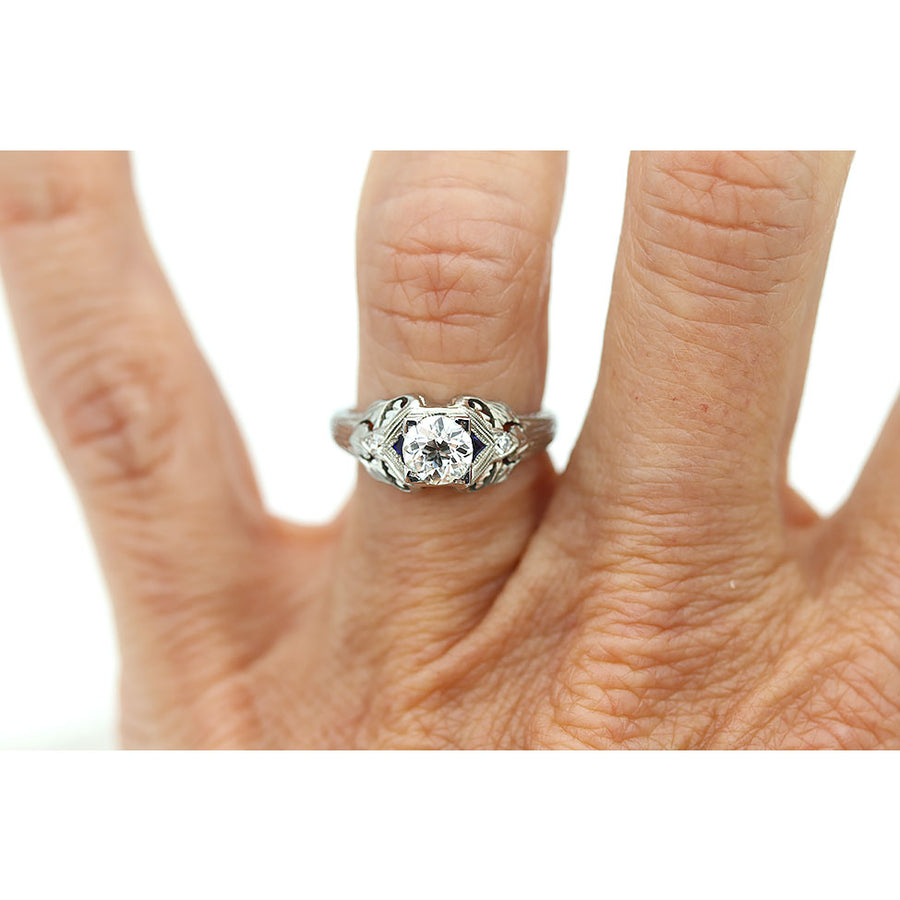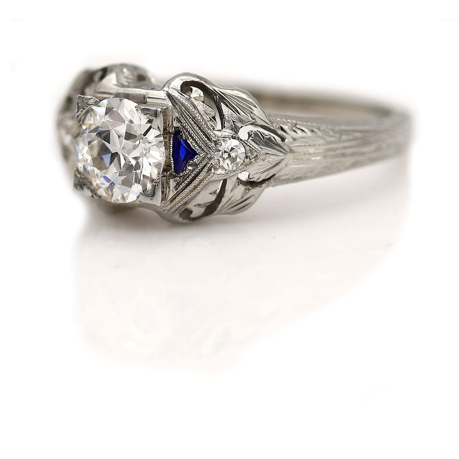 Vintage .64 CTW Old European Cut Diamond Art Deco Engagement Ring Sapphire Side Stones GIA J/VS2