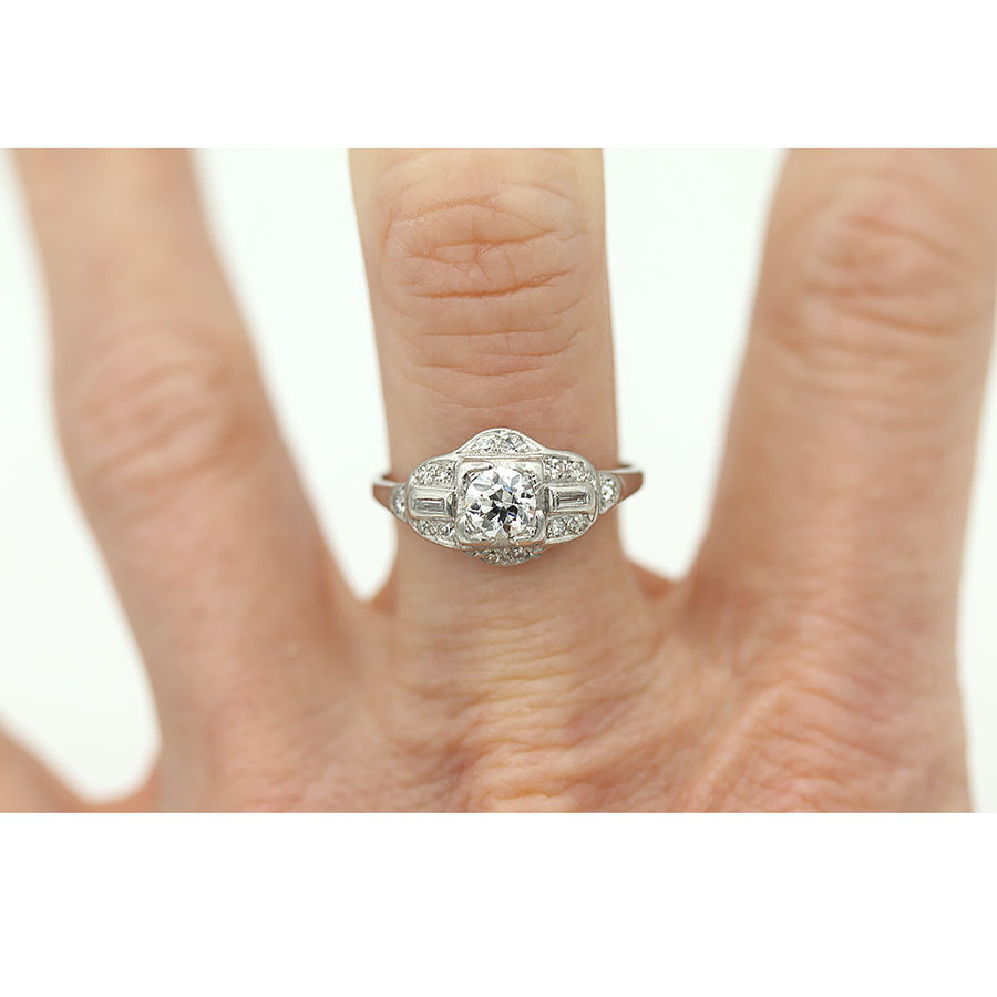 Vintage .79 CTW Old European Cut Diamond Art Deco Engagement Ring with Baguette Diamonds