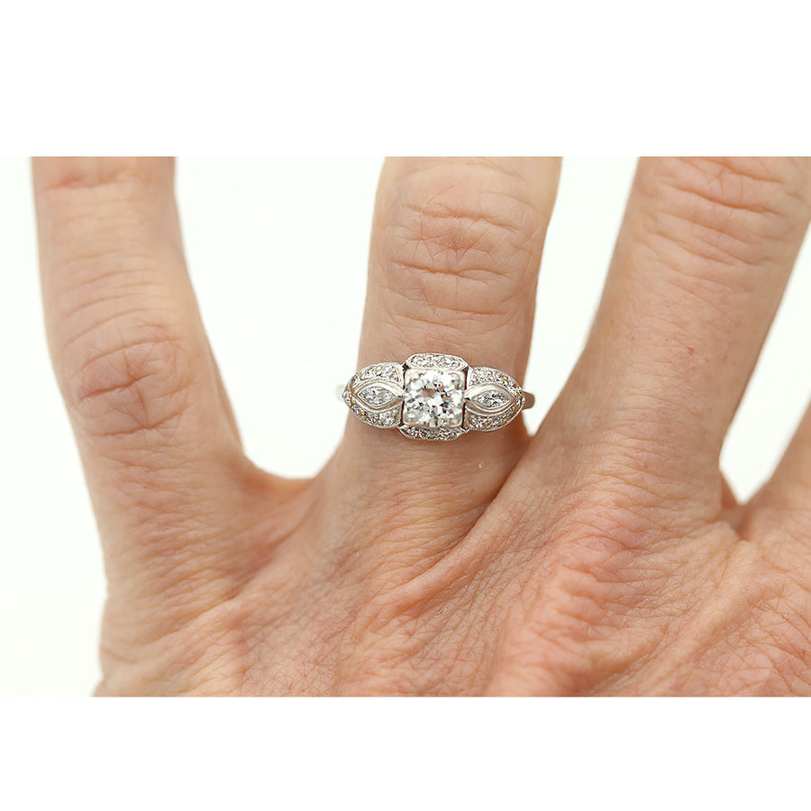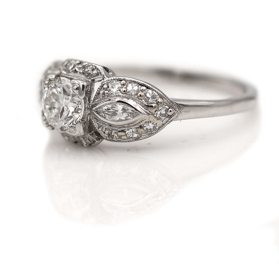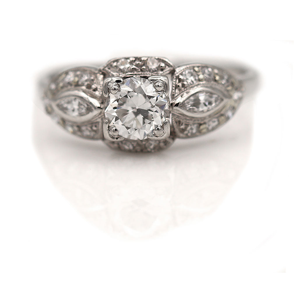 Vintage .81 CTW Transitional Cut Diamond Art Deco Engagement Ring Navette Side Stones