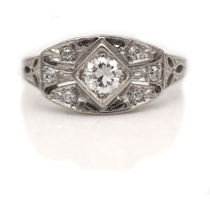 Vintage Octagonal .35 CTW Old European Cut Diamond Art Deco Engagement RIng