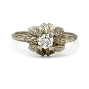 Vintage .35 Ct 14 Karat White Gold Art Deco Diamond Solitaire Engagement Ring
