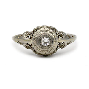 Art Deco .20 CTW Old European Cut Diamond Vintage Engagement Ring