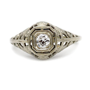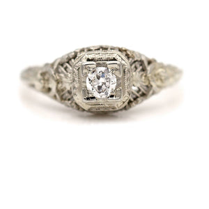 Vintage Floral .20 CTW European Cut Diamond Art Deco Engagement Ring