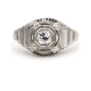 Art Deco .15 Ct Antique Engagement Ring with Floral Engravings