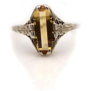 Art Deco 1.50 CT Rectangular Cut Citrine Engagement Ring Circa 1930s