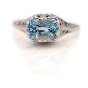Art Deco East West Set Emerald Cut Aquamarine Solitaire Engagement Ring