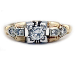 Antique .30 CTW 14 Karat Two Tone Diamond Promise Ring with Side Stones