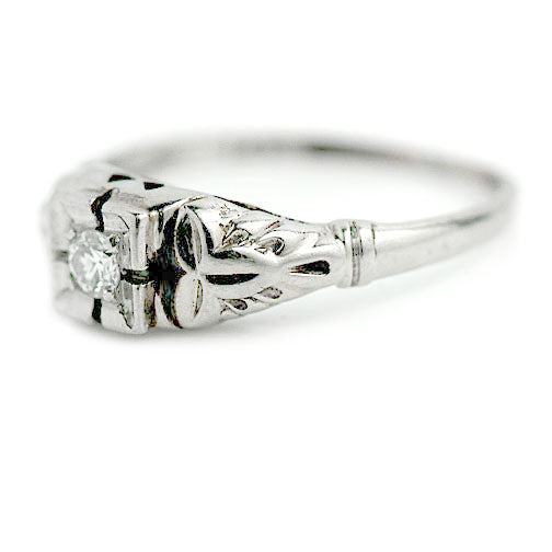 Antique .10 CTW Transitional Cut Diamond Solitaire Art Deco Engagement Ring