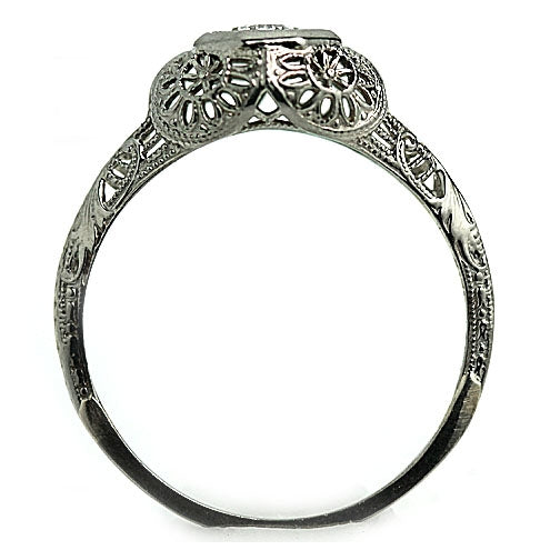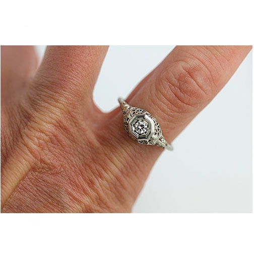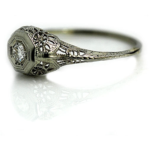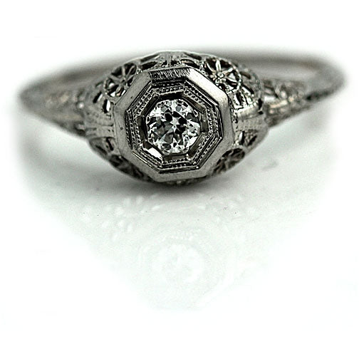 Antique .20 CTW 18 Karat White Gold Diamond Filigree Art Deco Solitaire Engagement Ring