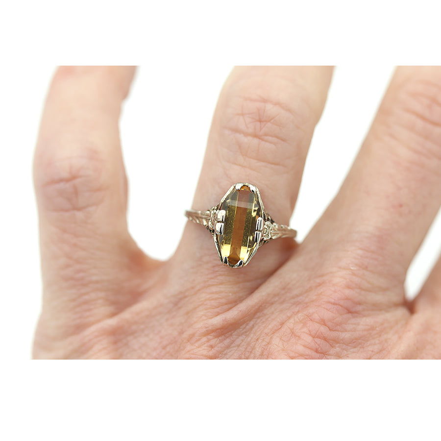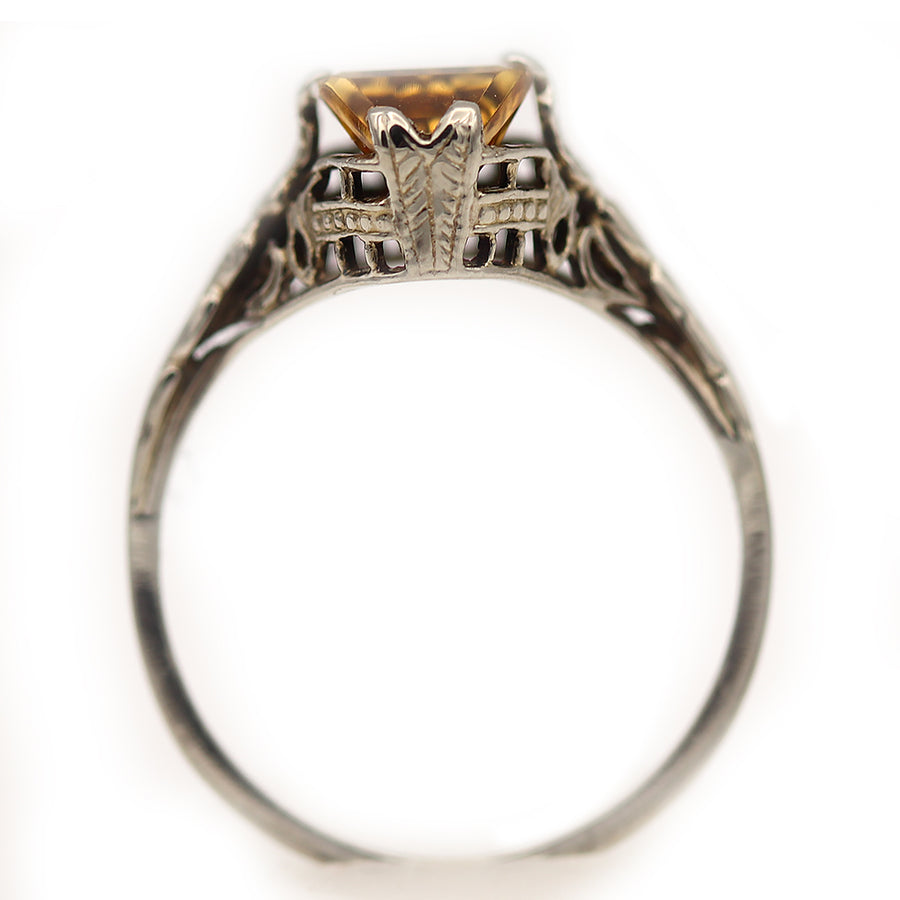 Art Deco 1.50 CT Rectangular Cut Citrine Engagement Ring Circa 1930s