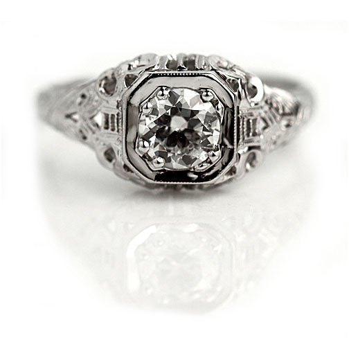 Art Deco .70 CTW Old European Cut Diamond Solitaire Engagement Ring GIA F/I1