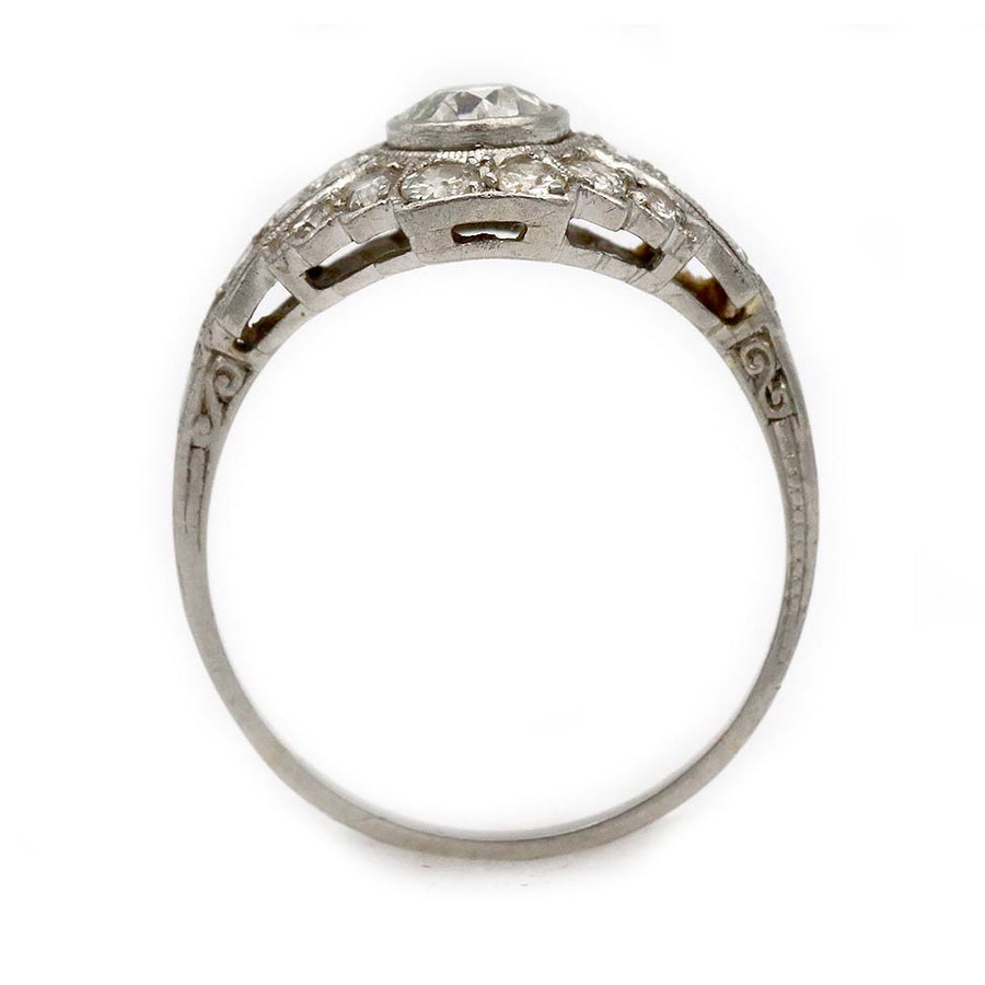 Art Deco Bezel Set .86 CTW Halo Platinum Vintage Engagement Ring