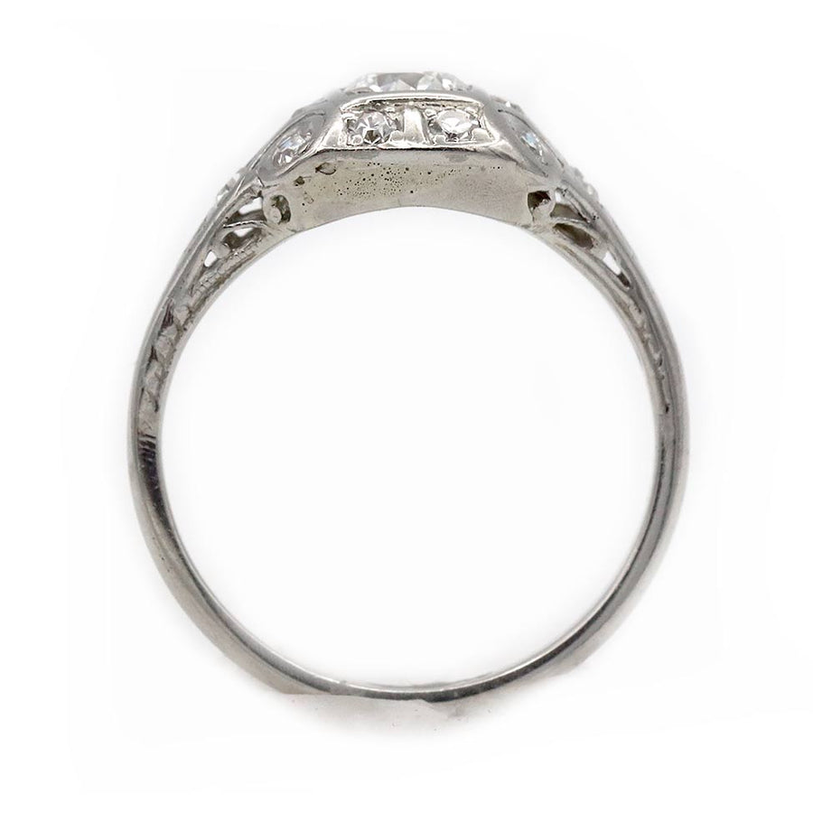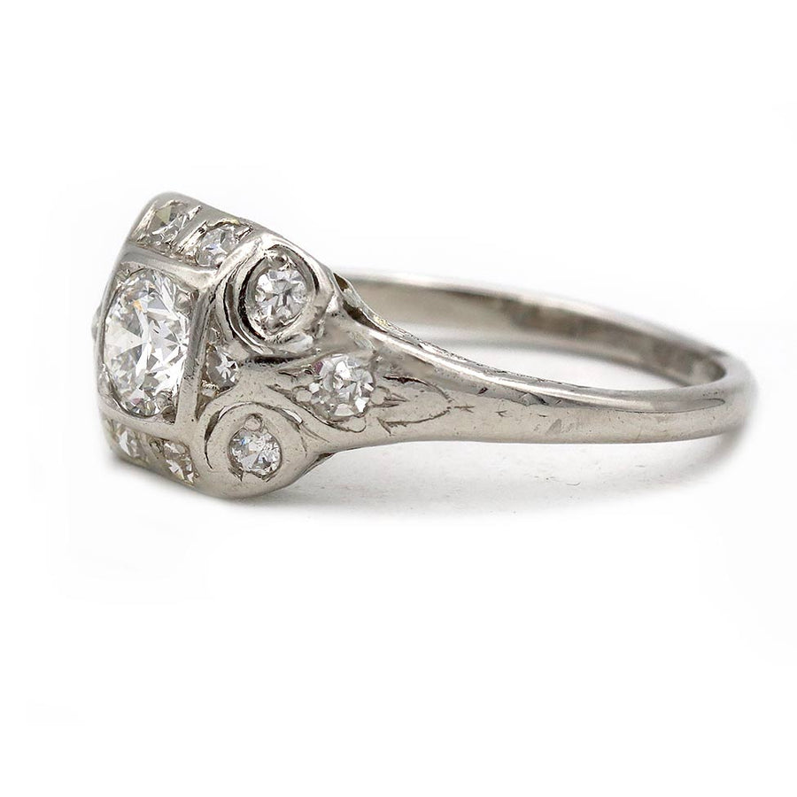 Art Deco Bezel Set .84 CTW European Cut Diamond Engagement Ring Filigree Engravings in Platinum
