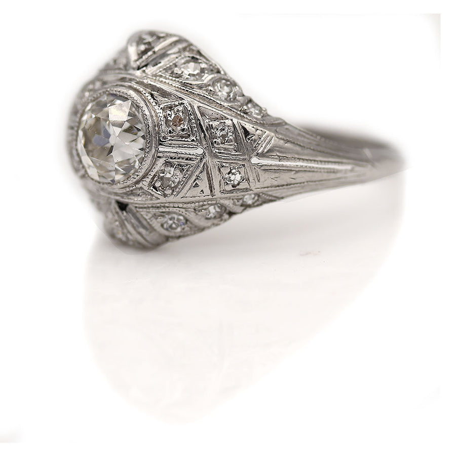 Edwardian 1.29 CTW Bezel Set Old Mine Cut Diamond Antique Engagement Ring