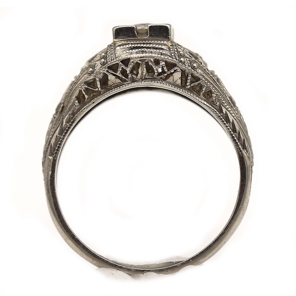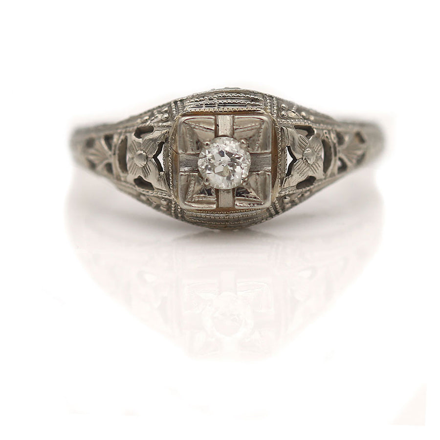 Art Deco .15 CTW Floral Old European Cut Solitaire Antique Diamond Engagement Ring