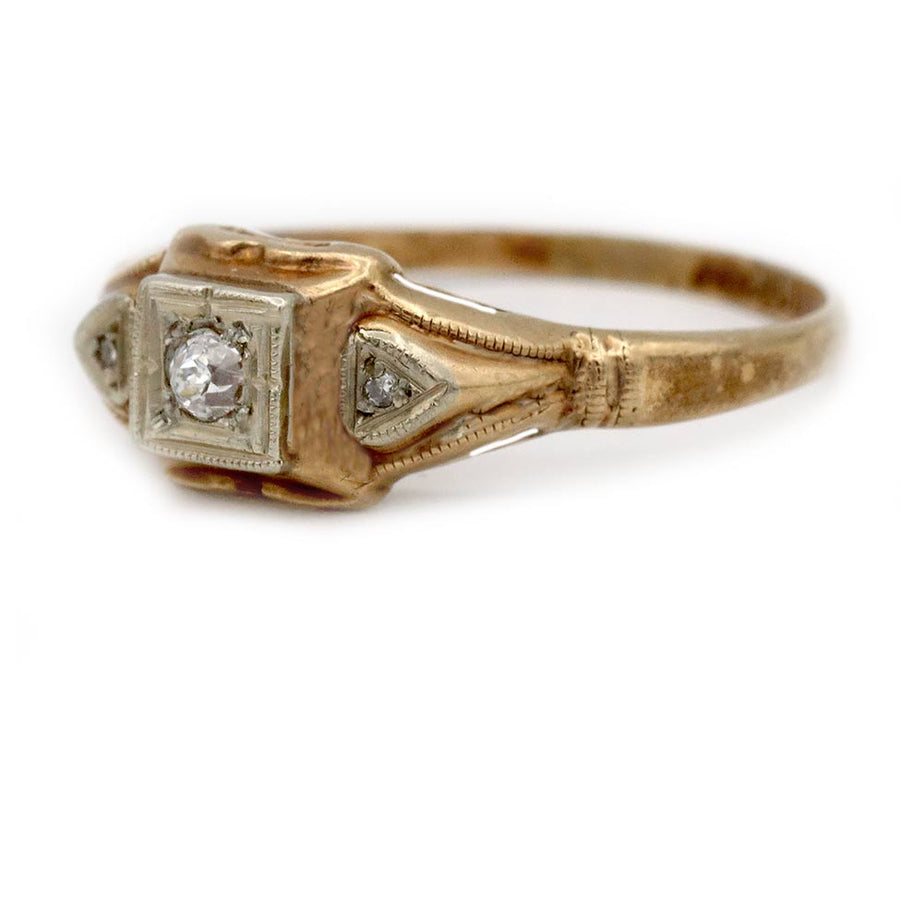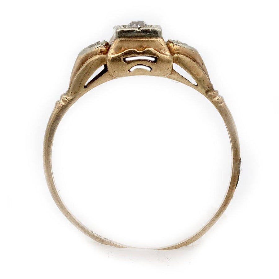 Mid-Century Two-Tone Diamond Engagement Ring in 14K Gold | 1950s