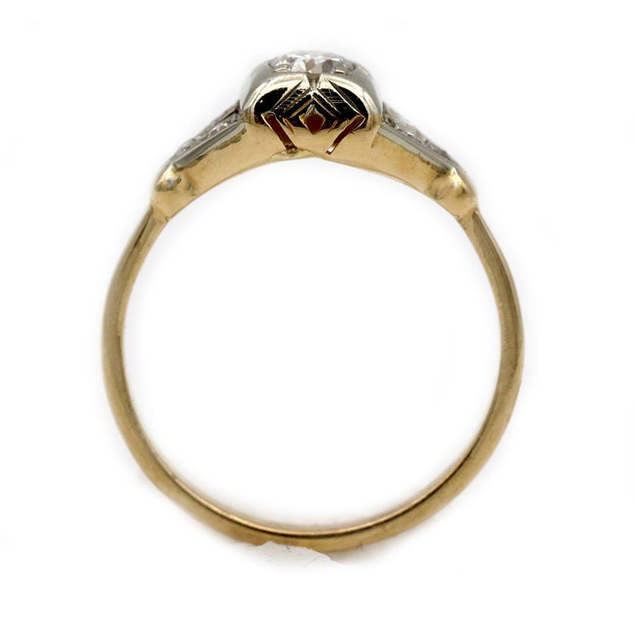 Mid-Century .31 CTW Split Shank European Cut 14 Karat Two Tone Vintage Engagement Ring
