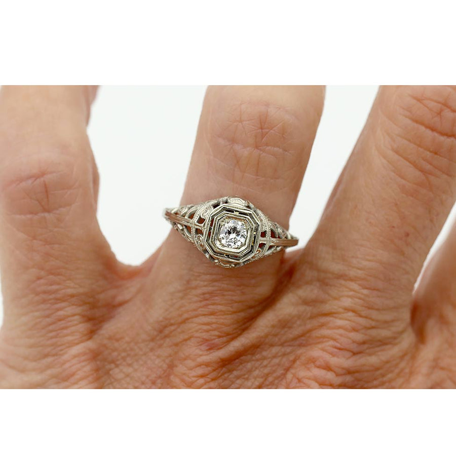 Art Deco .20 CTW Old European Cut Diamond Vintage Engagement Ring