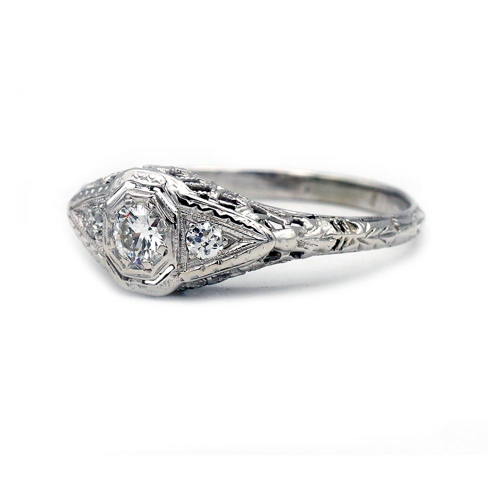 Vintage .34 CTW Three Stone Diamond Art Deco Engagement Ring