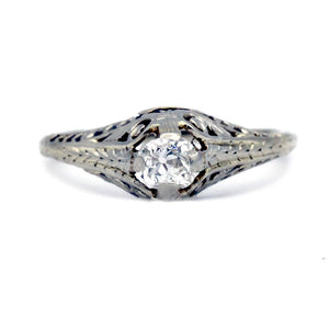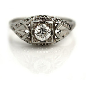 Art Deco .35 CTW Solitaire Vintage Diamond Engagement Ring Filigree