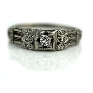 Vintage .28 CTW 18 Karat White Gold Diamond Art Deco Engagement Ring