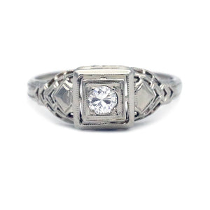 Antique 18 Karat White Gold Filigree .20 CTW Diamond Solitaire Engagement Ring