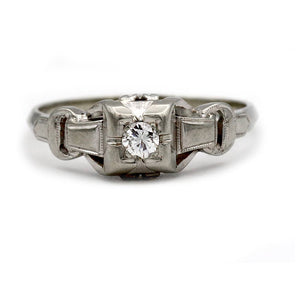 Art Deco .10 CTW Low Profile White Gold Vintage Engagement Ring with Side Diamonds