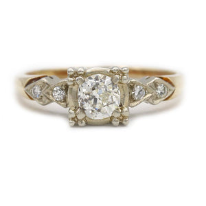 Mid-Century .07 CTW 1940s 14 Karat Two Tone Diamond Antique Engagement Ring