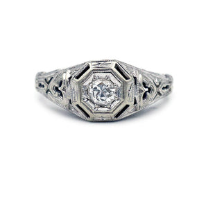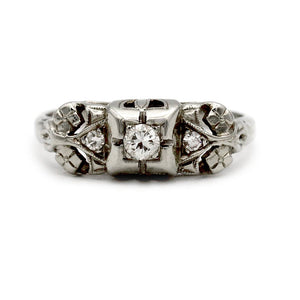 Art Deco .35 CTW Solitaire Antique Engagement Ring with Open Metal Work