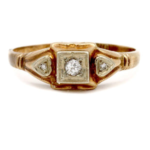 Mid-Century Two-Tone Diamond Engagement Ring in 14K Gold | 1950s